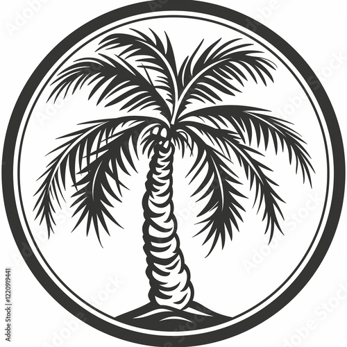 © Trend_04, Obraz premium Stylized Palm Tree in a Circle Design
