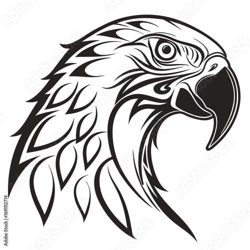 Fototapeta premium Stylized Parrot Head Tribal Tattoo Design Vector.