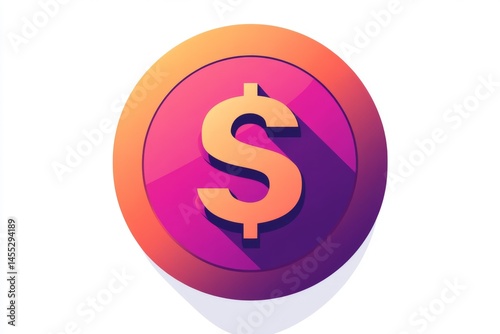 © Andrii Savchuk, Obraz premium Stylized pink dollar sign icon on purple circular background with light accents
