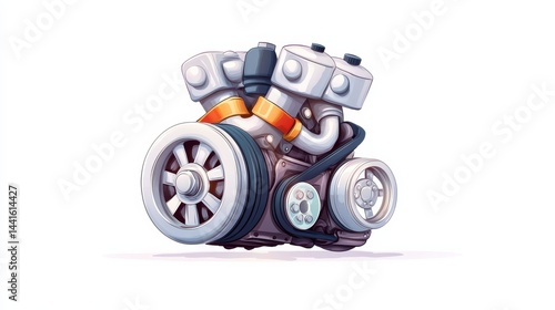 © Phatharaporn, Fototapeta premium Stylized Pixel Art Engine Illustration White Gray Orange Mechanical Design