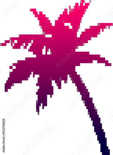 © vectorfusionart, Obraz premium Stylized pixel-art palm tree is showing jagged fronds with retro gradient on transparent background