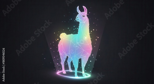 Naklejka premium Stylized polygonal ungulate appears illuminated by magical light against a...