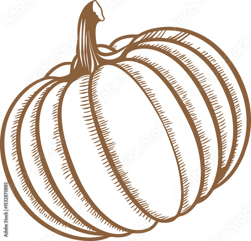 Fototapeta premium Stylized pumpkin is showing curved ribbed segments with hatch shading on...