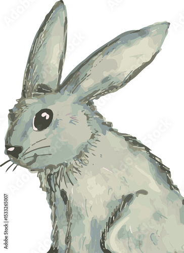 Obraz premium Stylized rabbit illustration showing fur texture and tall ears on transparent backdrop, copy space
