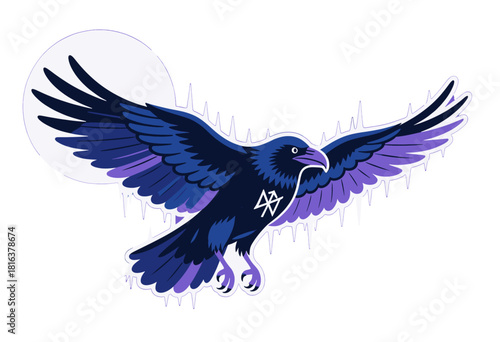 Obraz premium Stylized Raven in Flight with Moon Elements and Icy Edges
