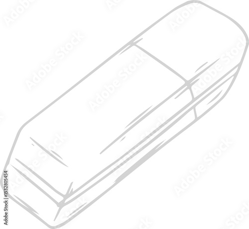 © vectorfusionart, Naklejka premium Stylized rectangular eraser floating on transparent background, showing hand-sketched beveled edges
