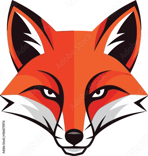 Obraz premium Stylized red fox head, sharp features, vector art, intense gaze.