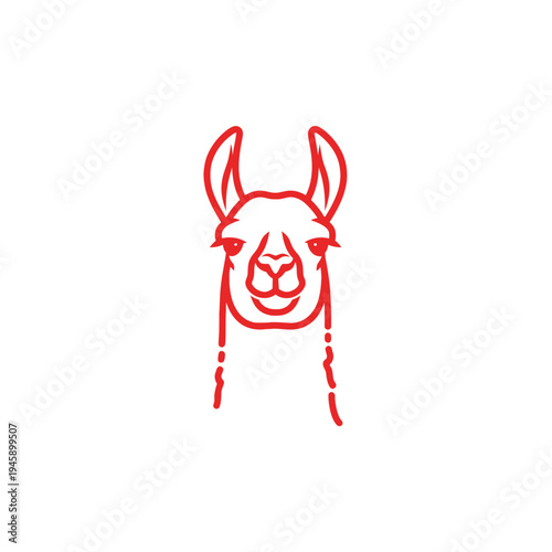 © ikk, Fototapeta premium Stylized red llama head outline on white background for design