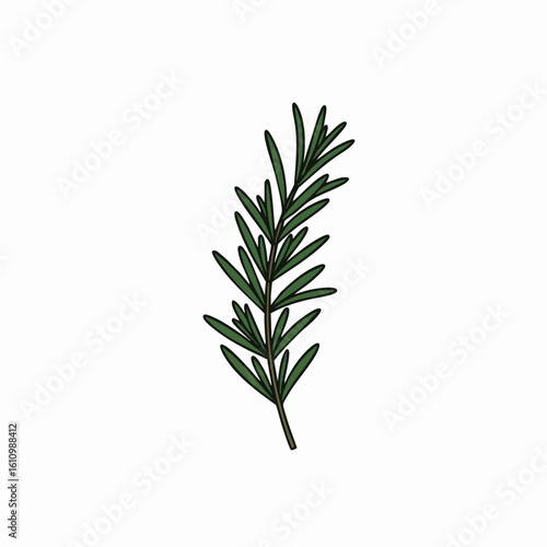 Obraz premium Stylized Rosemary Sprig Illustration with Dark Green Leaves and Brown Stem