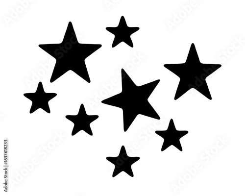 Obraz premium Stylized scattered constellation of black stars on a plain white background