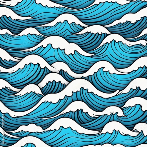 © Copper, Obraz premium Stylized seamless ocean waves background. Blue water waves abstract pattern. Seamless vector pattern. Wavy blue background