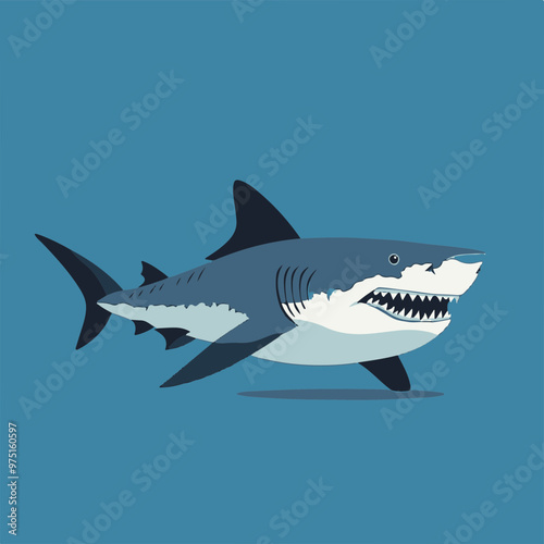 © Jaemie, Obraz premium Stylized Shark Swimming in Blue Background
