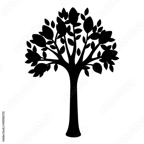 Obraz premium Stylized silhouette illustration of a flourishing tree with a leafy canopy