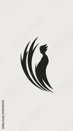 © agustin, Fototapeta premium Stylized Silhouette of a Woman with Flowing, Feather-like Accents