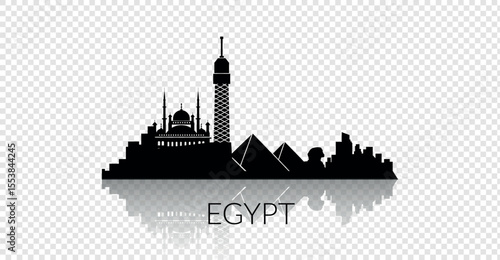 © chuhastock, Obraz premium Stylized silhouette of iconic Egyptian landmarks with their stunning reflections visible