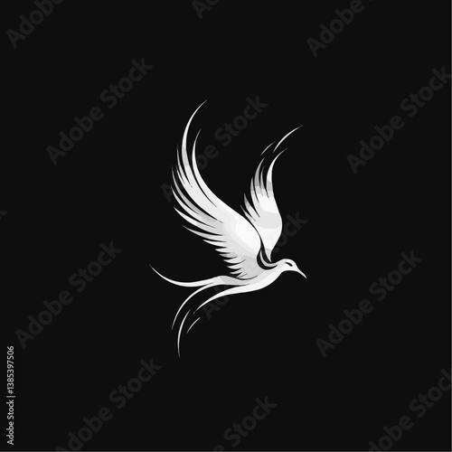 © ShaNeT, Fototapeta premium Stylized Silver Bird Logo on Black Background