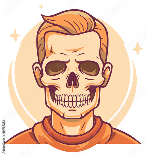 Fototapeta premium Stylized skull character illustration with hair and an orange outfit vector...