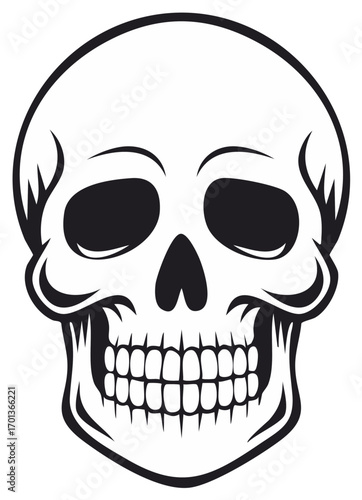 Fototapeta premium Stylized skull illustration in black and white.