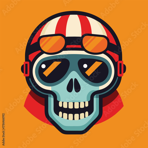 Fototapeta premium Stylized skull wearing a vintage motorcycle helmet and goggles