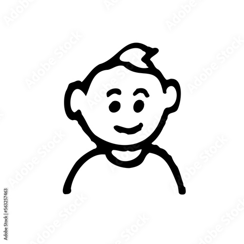© yik2007, Naklejka premium Stylized smiling face. Emotional harmony as part of a healthy lifestyle. Linear sketch of doodle face, smiley, isolated on white background. Logo, sign on the theme of healthy lifestyle