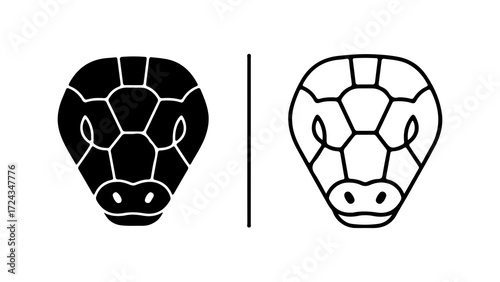 Obraz premium Stylized Snake Head Icons in Solid and Outline Styles.