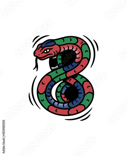 © stella anggie, Obraz premium Stylized snake illustration on black background