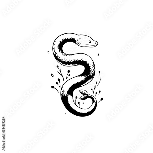 Fototapeta premium Stylized snake illustration with decorative elements offering a unique artistic touch and graphic design enhancement
