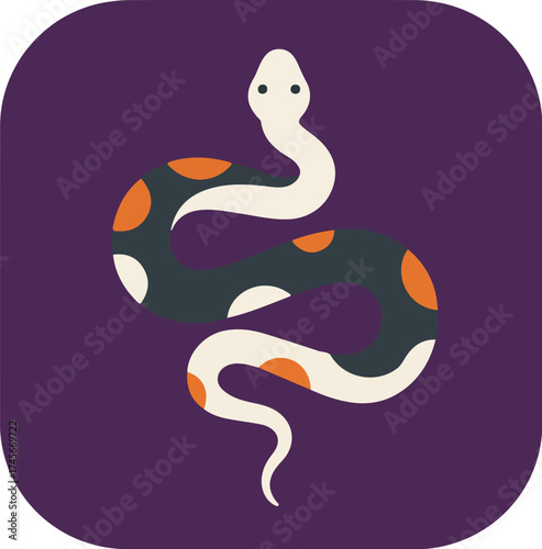 Obraz premium Stylized snake with bright orange spots on deep green body against purple background