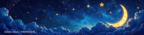 © Kachaphot, Fototapeta premium Stylized star chart with crescent moon and stars, galaxy, night sky