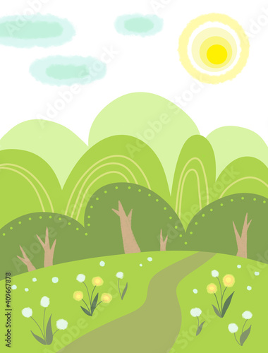 Obraz premium stylized summer forest landscape in bright colors