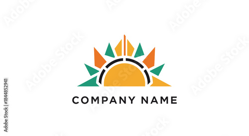 Fototapeta premium Stylized Sun Logo with Geometric Rays and Company Name.