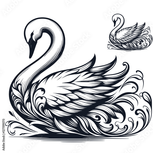 Fototapeta premium Stylized swan illustration with ornate feathers and flowing lines, elegant...
