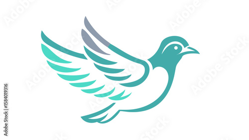 Fototapeta premium Stylized teal bird with wings spread in flight isolated on white background