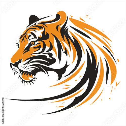 © davian, Fototapeta premium Stylized Tiger Head Vector – Dynamic Orange and Black Illustration