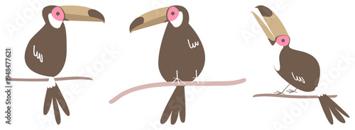 Obraz premium Stylized toucans perched gracefully element set