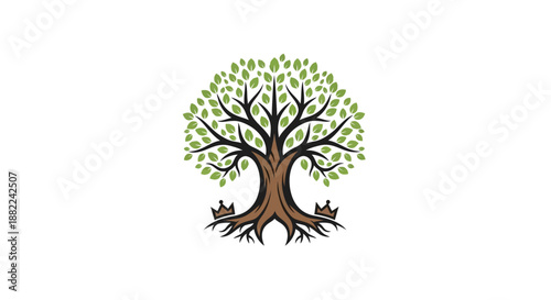 © Mufarokah, Obraz premium Stylized tree illustration with crown elements isolated on white background