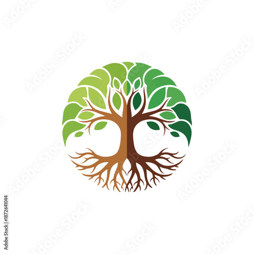 © bohey, Fototapeta premium Stylized Tree Logo with Interconnected Roots and Branches.