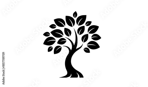 Fototapeta premium Stylized tree silhouette vector with leaves isolated on white background