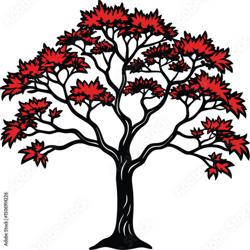 © Sayed, Fototapeta premium Stylized tree vector illustration with red foliage and branches on white background beautiful nature element