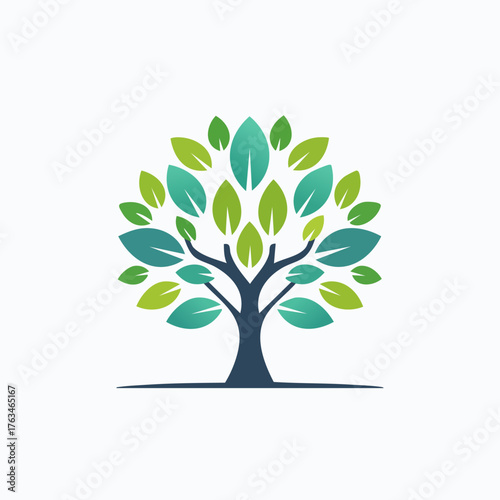 Fototapeta premium Stylized Tree with Green and Blue Leaves Illustration.