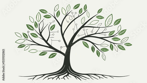 © Christhoper, Obraz premium Stylized Tree with Integrated Circuitry Design.