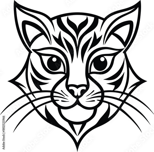 © Taufiq, Fototapeta premium Stylized tribal cat face with bold black and white lines