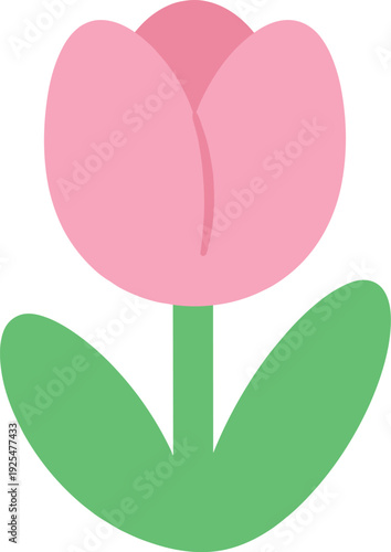 Fototapeta premium Stylized tulip flower illustration with simple shapes in pink and green color