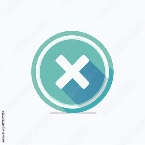 © SyarifSYMA, Obraz premium Stylized turquoise circular cross mark icon representing a universal symbol for closing, canceling, deleting, or indicating an error in modern digital interfaces and web applications