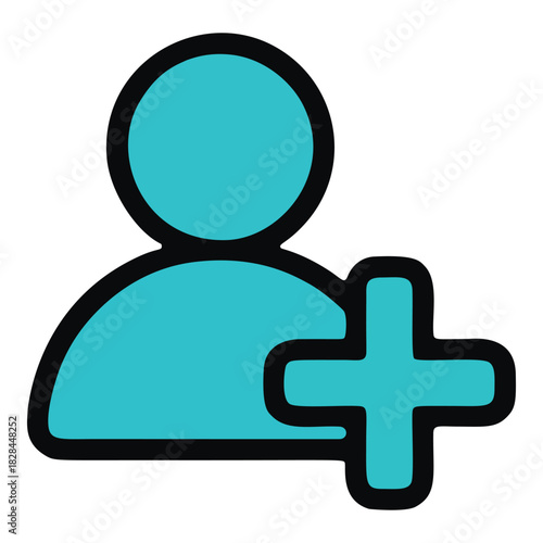 © Adkia, Fototapeta premium Stylized turquoise user icon with a plus sign for adding a new friend or contact.