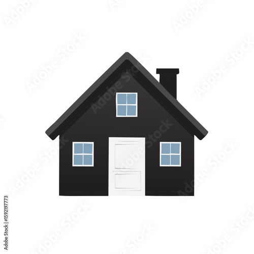 © FryArt, Obraz premium Stylized Vector House Illustration with Gable Roof, Door, Windows, and Chimney