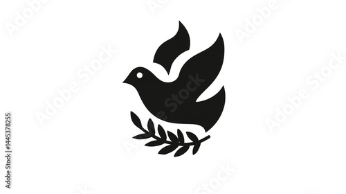 © Igorbmm, Obraz premium Stylized vector illustration of a dove holding an olive branch on black background