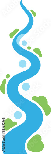 Obraz premium Stylized vector illustration of a winding blue river with green banks.