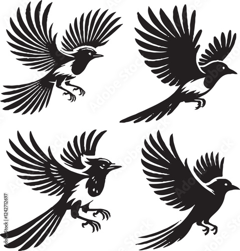 Obraz premium "Stylized Vector Silhouette Illustrations of Birds in Flight"
