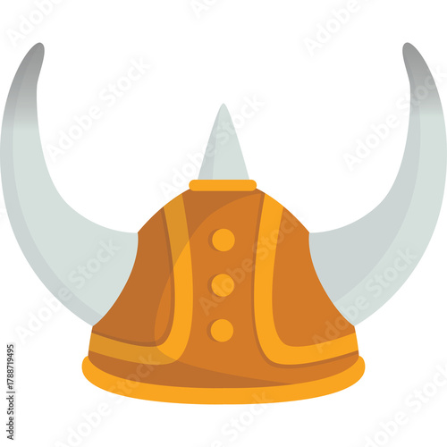 © Nismara, Naklejka premium Stylized Viking Helmet with Orange and Gold Accents and Large White Horns on a Transparent Background